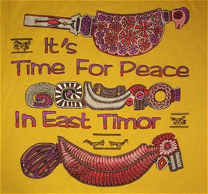 MAET raises funds through our multicolor East Timorese ethnographic T-shirt designs directly for projects which benefit the people and refugees of East Timor. T-shirts sell for twenty dollars. The T shirt project is sponsored by supporting groups in Madison, Wisconsin and people involved with MAET and ETAN nationwide.